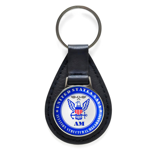 U.S. Navy Aviation Structural Mechanic Black Leather Keychain Silver Keyring