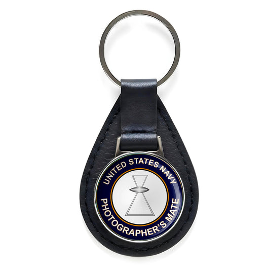 US Navy Photographer's Mate Black Leather Keychain Silver Keyring Military Gift