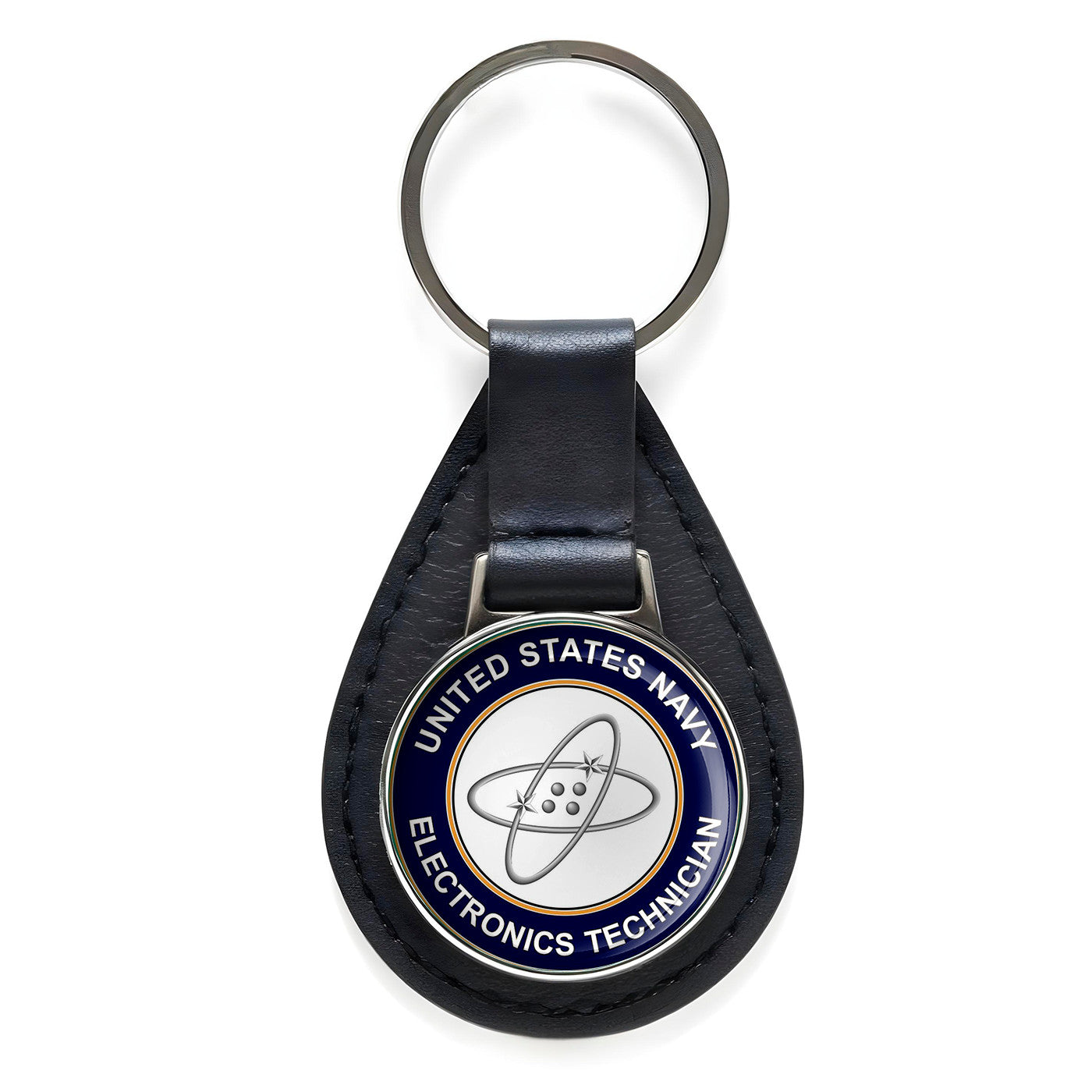 U.S. Navy Electronics Technician Black Leather Keychain Silver Keyring Military