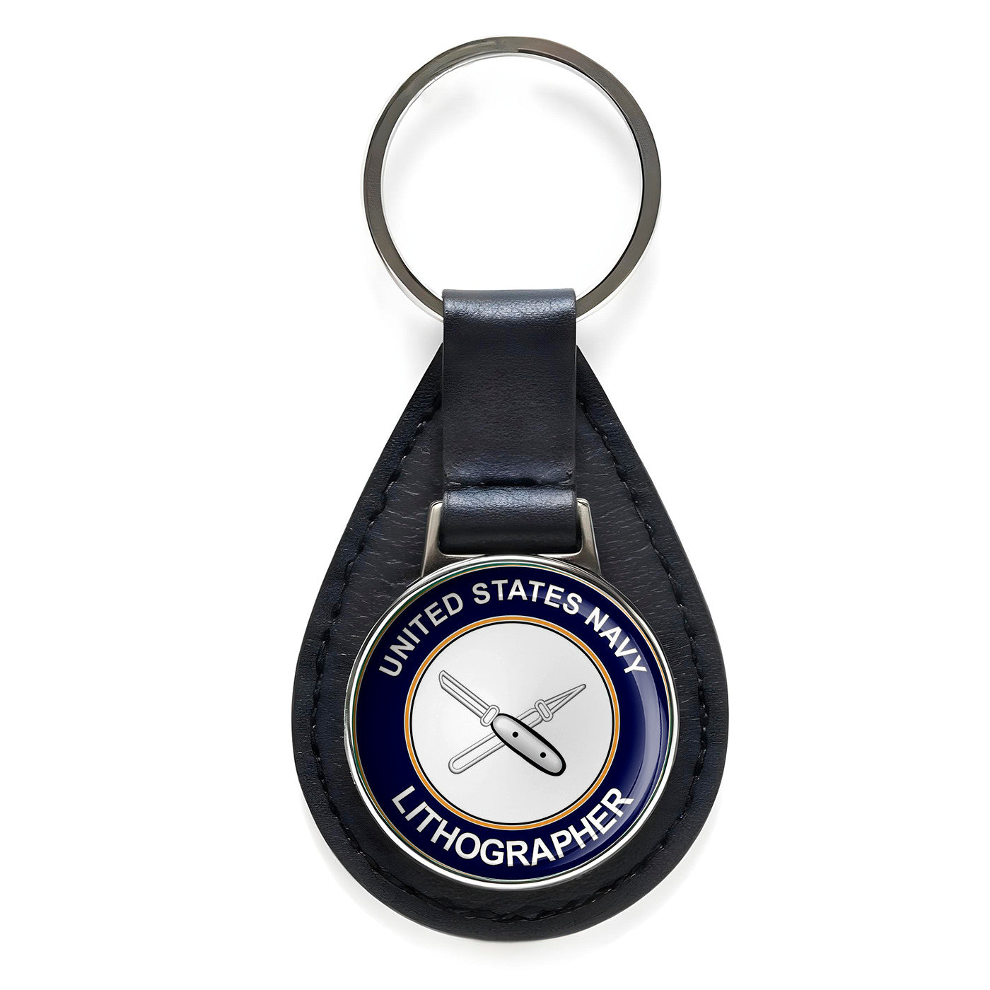 U.S. Navy Lithographer LI Black Leather Keychain Silver Keyring Military Gift