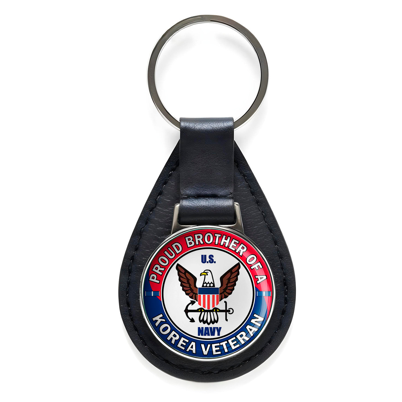 U.S. Navy Proud Brother of a Korea Veteran Black Leather Keychain Silver Keyring
