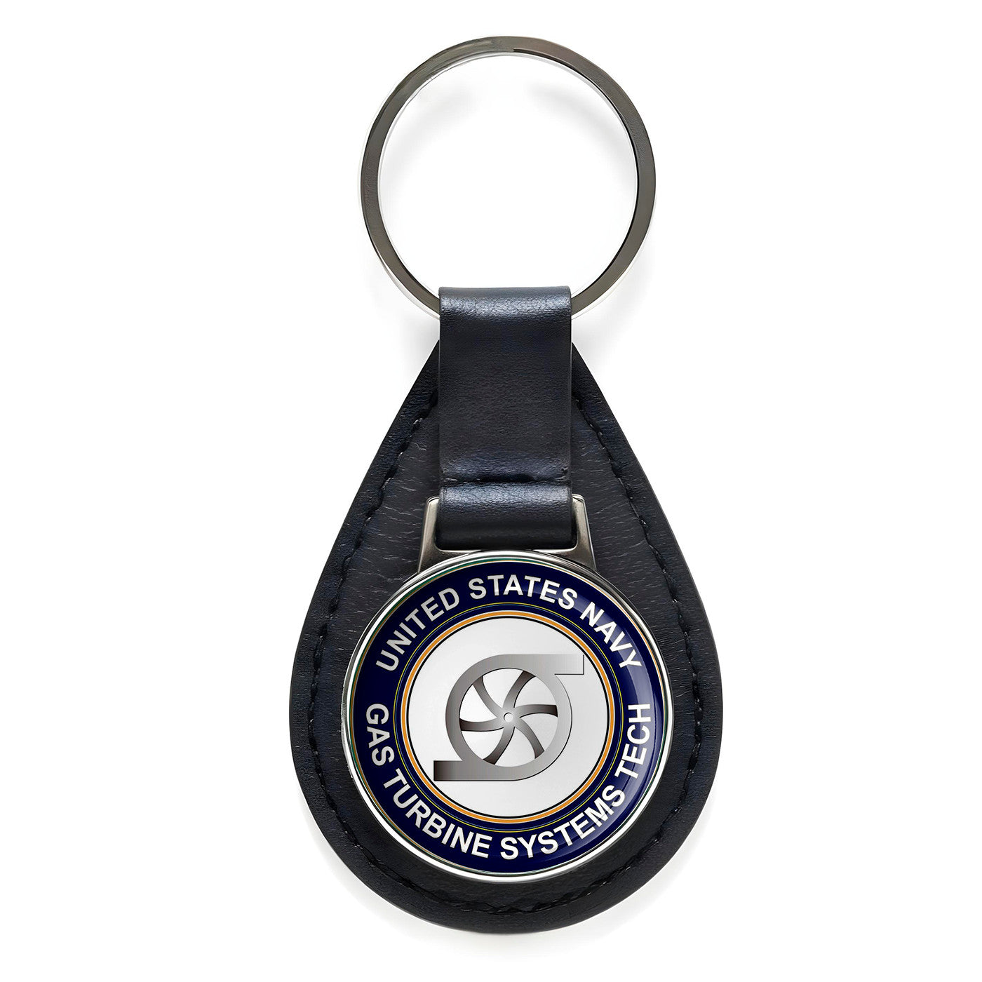 US Navy Gas Turbine Systems Tech Black Leather Keychain Silver Keyring Military